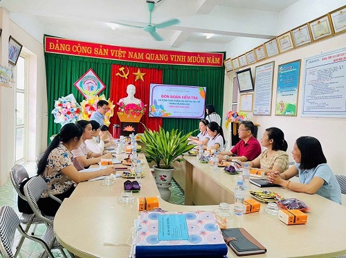 Hình ảnh: Đoàn kiểm tra làm việc tại trường mầm non Hoằng Giang, xã Hoằng Giang