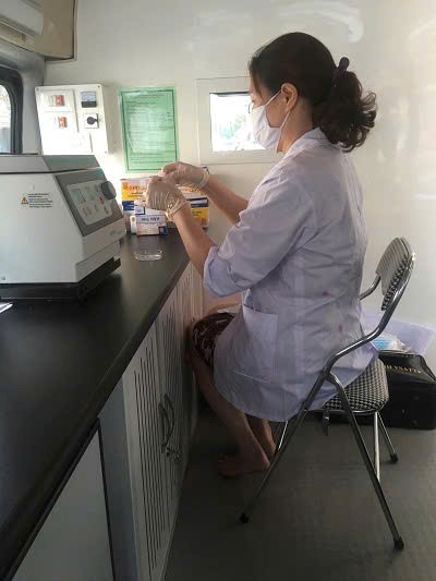 Cán bộ Chi cục ATVSTP thực hiện kiểm nghiệm nhanh thực phẩm.