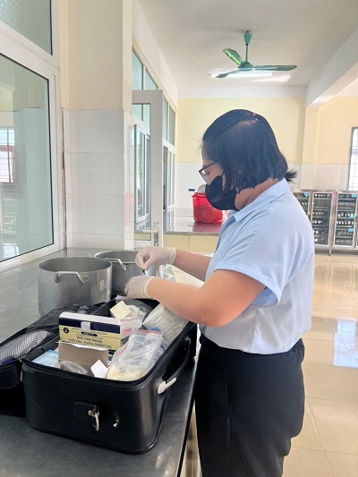 Đoàn kiểm tra làm Tets nhanh thực phẩm sử dụng cho bữa ăn tại BĂTT