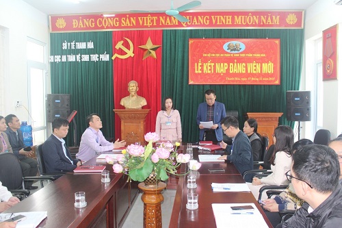 Trước cờ Đảng, cờ Tổ Quốc và chân dung Chủ tịch Hồ Chí Minh vĩ đại đảng viên mới Nguyễn Thị Thuý đã xúc động tuyên thệ tuyệt đối trung thành với mục đích lý tưởng cách mạng của Đảng, làm tốt nhiệm vụ đảng viên và hứa sẽ tiếp tục phấn đấu để luôn xứng đáng là người đảng viên gương mẫu, đóng góp sức mình thực hiện thành công nhiệm vụ chính trị của Chi bộ Chi cục an toàn vệ sinh thực phẩm, góp phần xây dựng Chi bộ Chi cục an toàn vệ sinh thực phẩm, Đảng bộ Sở Y tế ngày càng vững mạnh.